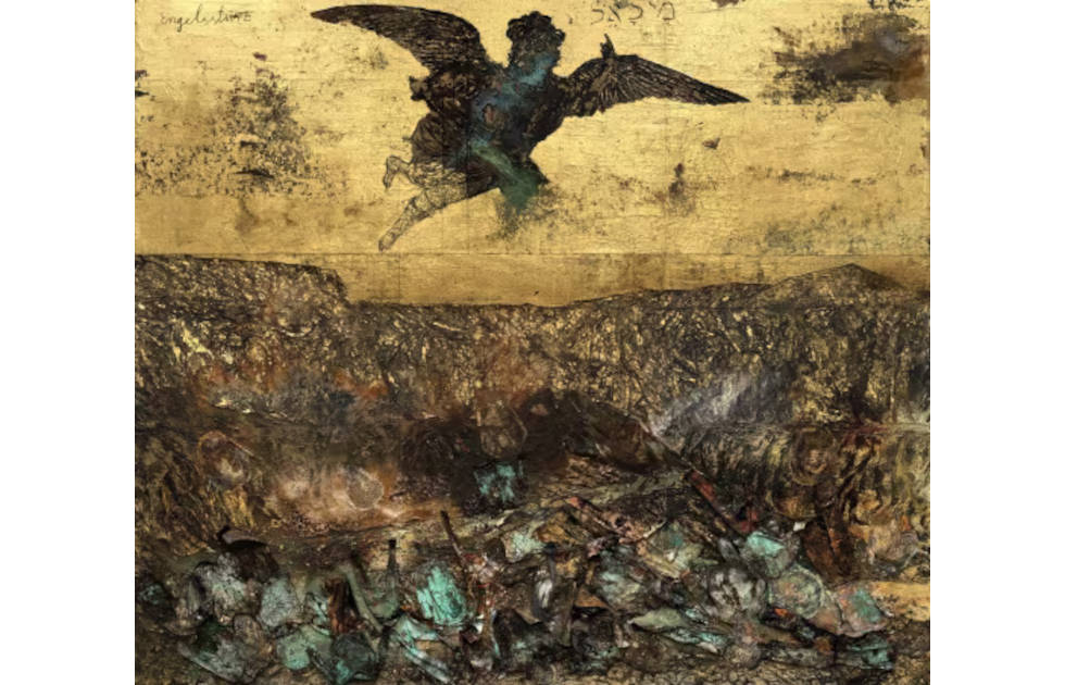 - Anselm Kiefer, Seraphim, 1983–1984, Öl, Stroh, Emulsion und Schellack auf Leinwand, 320,7 × 330,8 cm (Solomon R. Guggenheim Museum, New York, Purchased with funds contributed by Mr. and Mrs. Andrew M. Saul, 1984) Foto: © Atelier Anselm Kiefer.