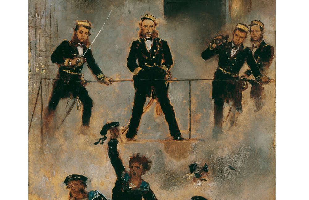 - Anton Romako, Tegetthoff in der Seeschlacht bei Lissa I, 1878-1880, Öl auf Holz, 86,5 x 47,5 cm (Belvedere, Wien).