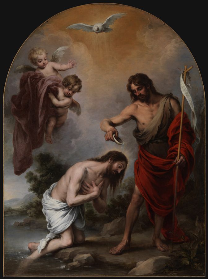 Bartolomé Esteban Murillo, The Baptism of Christ / Taufe Christi, 1667-68, Oil on canvas, 283 x 210 cm, Chapel of San Antonio, Catedral de Sevilla.