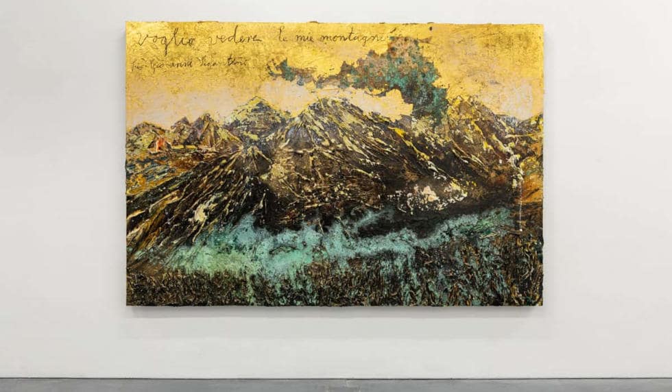 Die großformatigen Leinwände zeigen eine kraftvolle und beunruhigende Landschaft. Auf der Bildfläche verwendet Kiefer die Schrift als ein „poetisches Wort“, das sich frei bewegt – in diesem Fall kehrt es oft wieder und verfolgt sich selbst. „Ich möchte meine Berge sehen“ – für Giovanni Segantini – über den dunklen, erdigen Gipfeln, vom Licht der Dämmerung oder der Nacht erleuchtet. Doch die Texte spielen eine ambivalente Rolle und verleiht dem Bild mitunter unerwartete Interpretationen. 2