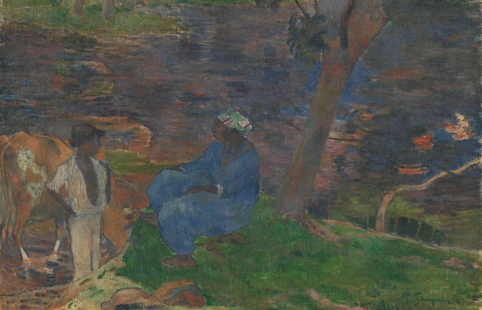 Nachdem Paul Gauguin im November 1887 nach Paris zurückgekehrt war, traf er erstmals die Brüder van Gogh – wohl vermittelt durch Schuffenecker. Vor allem für Theo van Gogh interessierte sich der aufstrebende Maler, da dieser in der bedeutenden Kunsthandlung von Goupil et Cie als Kunsthändler tätig war. Theo van Gogh vertrat ihn in den nächsten Jahren als Kunsthändler. Vincent van Gogh (1853–1890) bewunderte den weitgereisten Maler und wurde später ein guter Freund Gauguins. Im November 1887 organisierte Vincent van Gogh eine Gruppenausstellung in Paris, wo Paul Gauguin Vincent van Goghs „Zwei Sonnenblumen“ (Sommer 1887) sah und gegen seine Studie „Am Ufer des Sees auf Martinique“ (Sommer 1887) eintauschte.