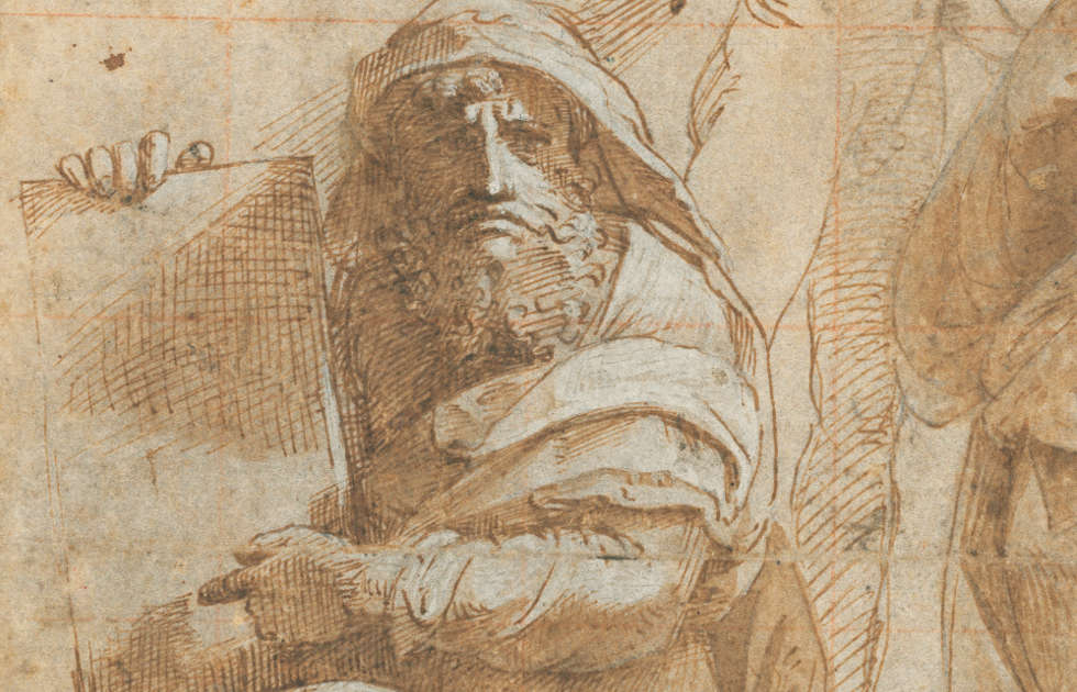 Die Zeichnung spielte für Raffael bereits in Florenz eine große Rolle, denn er kopierte „per imparare [um zu lernen]“ Leonardos oder Michelangelos Werke.5 Die Zeichnung ermöglichte ihm aber auch die Vorbereitung und Entwicklung seiner Kompositionen vom flüchtigen, spontanen Entwurf über Studien einzelner Details wie des Faltenwurfs von Gewändern und des sich darin brechenden Lichts bis hin zur genauen Erfassung von Körperspannungen oder einzelnen Gebärden der Akteure. Der komplexe Entstehungsprozess seiner Werke spiegelt sich im Medium der Zeichnung deutlich wider.