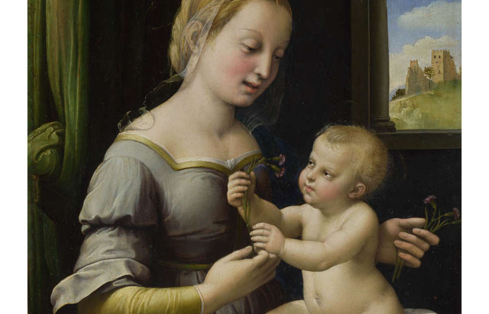 Immer wieder wird in der Literatur betont, dass das gute Aussehen, die soziale Anpassungsfähigkeit, die gepflegten Umgangsformen dem aus Urbino stammenden Jungstar am Papsthof im Vatikan quasi die Herzen entgegenfliegen haben lassen. Und damit wird auch schon eine Differenz zu Michelangelo aufgemacht, der zwar als „Göttlicher Michelangelo“ apostrophiert aber für seine „terribilità“ gefürchtet wurde. Der sanften Natur des Malers scheinen auch die unzähligen Madonnenbilder zu entsprechen, in denen er, in die Fußstapfen Leonardos tretend, der Mutter-Kind-Beziehung große Bedeutung zumaß. Skizzenblätter zeigen mehrere Varianten, wie Mutter und Kind zueinander positioniert werden konnten. Die Intimität und Lebhaftigkeit der Darstellung steht dabei im spannungsreichen Bezug zur theologischen Aussage einer Gottesschau.