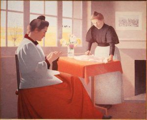 - Achille Laugé, Vor dem Fenster, 1899, Öl auf Leinwand, 123 × 150 cm (Association des Amis du Petit Palais, Genf)