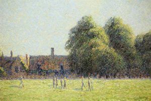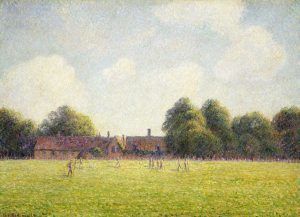 - Camille Pissarro, Hampton Court Green, 1891, Öl auf Leinwand, 54,3 × 73 cm (National Gallery of Art, Washington – Ailsa Mellon Bruce Collection)