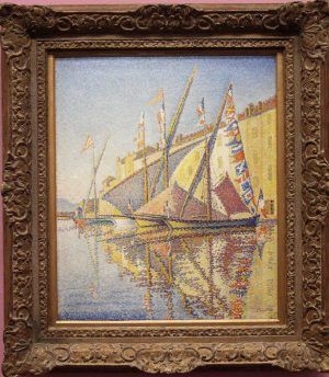 - Paul Signac, Segelboote im Hafen von Saint-Tropez, Opus 240, 1893, Öl auf Leinwand, 56 × 46,5 cm (Von der Heydt-Museum, Wuppertal)