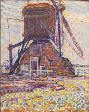 - Piet Mondrian, Die Winkeler Mühle, pointillistische Fassung, 1908, Öl auf Leinwand, 44,5 × 34,3 cm (Dallas Museum of Art – Foundation for the Arts Collection, Schenkung James H. and Lillian Clark Foundatio)