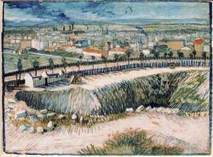 - Vincent van Gogh, Pariser Vororte, Blick vom Montmartre, 1887, Gouache, Kreide, Bleistift und Feder auf Papier, 39,5 × 53,5 cm (Stedelijk Museum, Amsterdam)