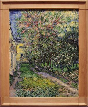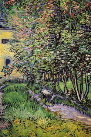 Die Hauptwerke Vincent van Goghs entstammen jedoch der Zeit in Arles, als er vom Wunsch beseelt, eine Künstlerkolonie zu begründen und die Farben des Orients zu entdecken, die Provinz aufsuchte (→ Vincent van Gogh : Paul Gauguin in Arles). Ein Gemälde entstand während seines Aufenthalts in der Nervenheilanstalt in Saint-Remy. Es zeigt den Garten im Innenhof, ein wenig Architektur. Die Pinselschrift ist heftig bewegt, womit auch schon beschrieben ist, warum der Pointillismus keine Option für van Gogh darstellte. Die mühsame Tüpfelarbeit war sicher für den ungestümen Künstler mit dem charakteristischen Pinselstrich mehr Qual als Befriedigung. Doch die Arbeit mit den Komplementärfarben, die Hinwendung zur hellen Palette mit einer Vorliebe für Gelb, Orange, Flieder – all das sind Schlüsse, die Vincent van Gogh aus dem Pointillismus und dem Neoimpressionismus schloss.