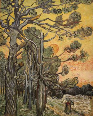- Vincent van Gogh, Pinien bei Sonnenuntergang, 1889, Öl auf Leinwand, 91,5 × 72 cm (Kröller-Müller Museum, Otterlo)