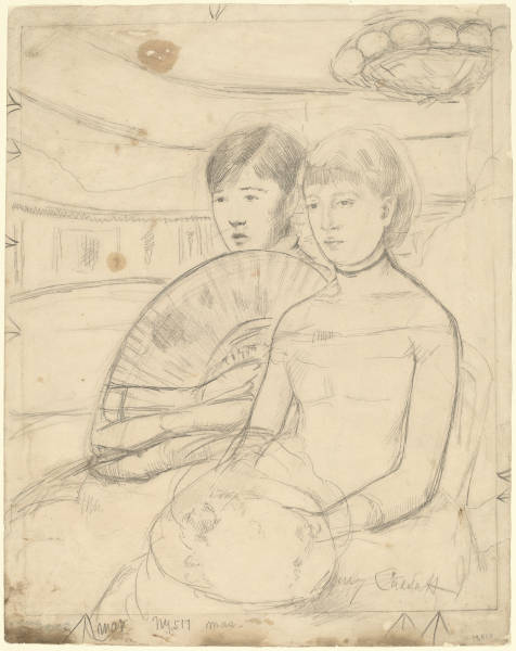 - Mary Cassatt, Die Loge [recto], 1882, Grafit, 28 × 22.1 cm (The National Gallery of Art, Washington, Chester Dale Collection, 1948.5.1.a)